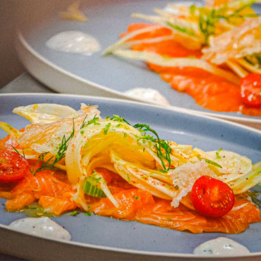 Gravlax de truite, salade de fenouil et agrumes