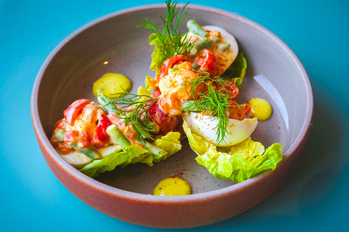 Œufs farcis à la niçoise et mayonnaise aux herbes