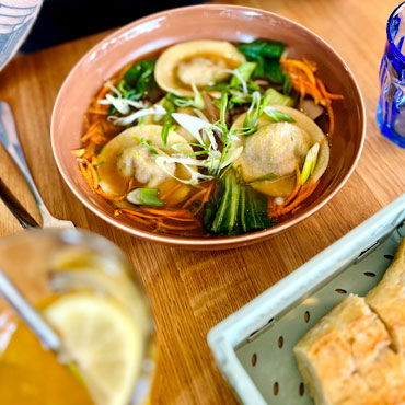 Gnocchis garnis à la brousse, pesto épinard & oseille